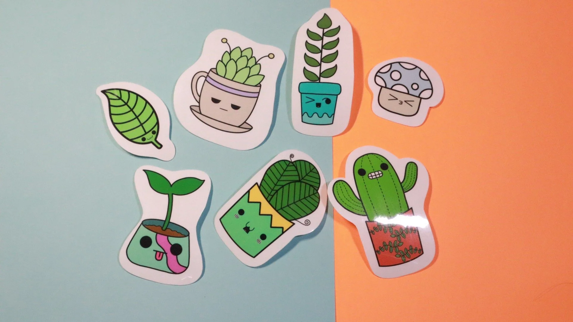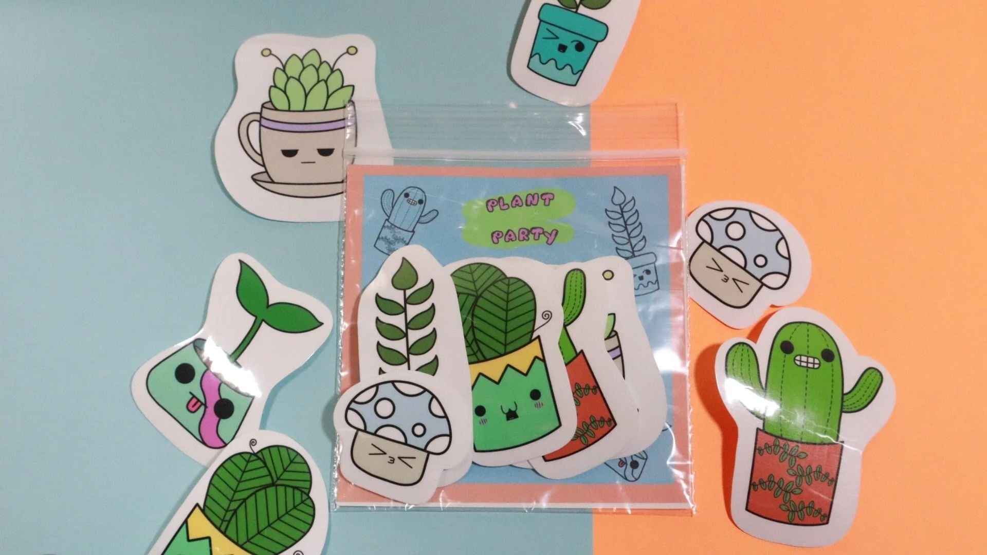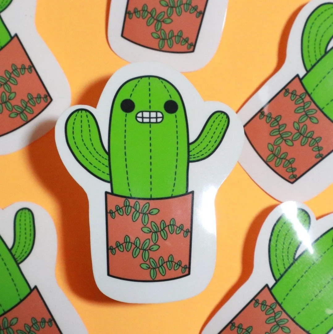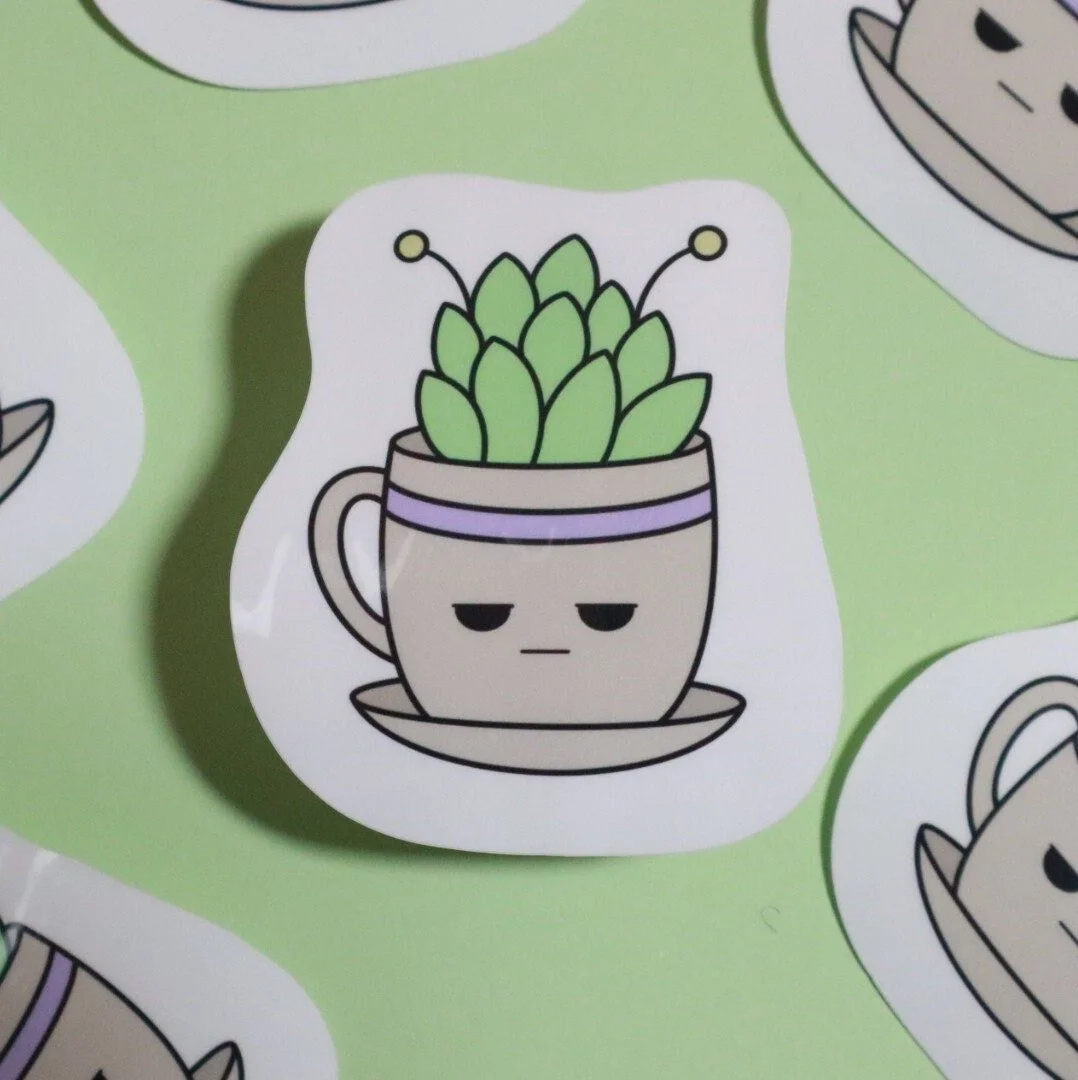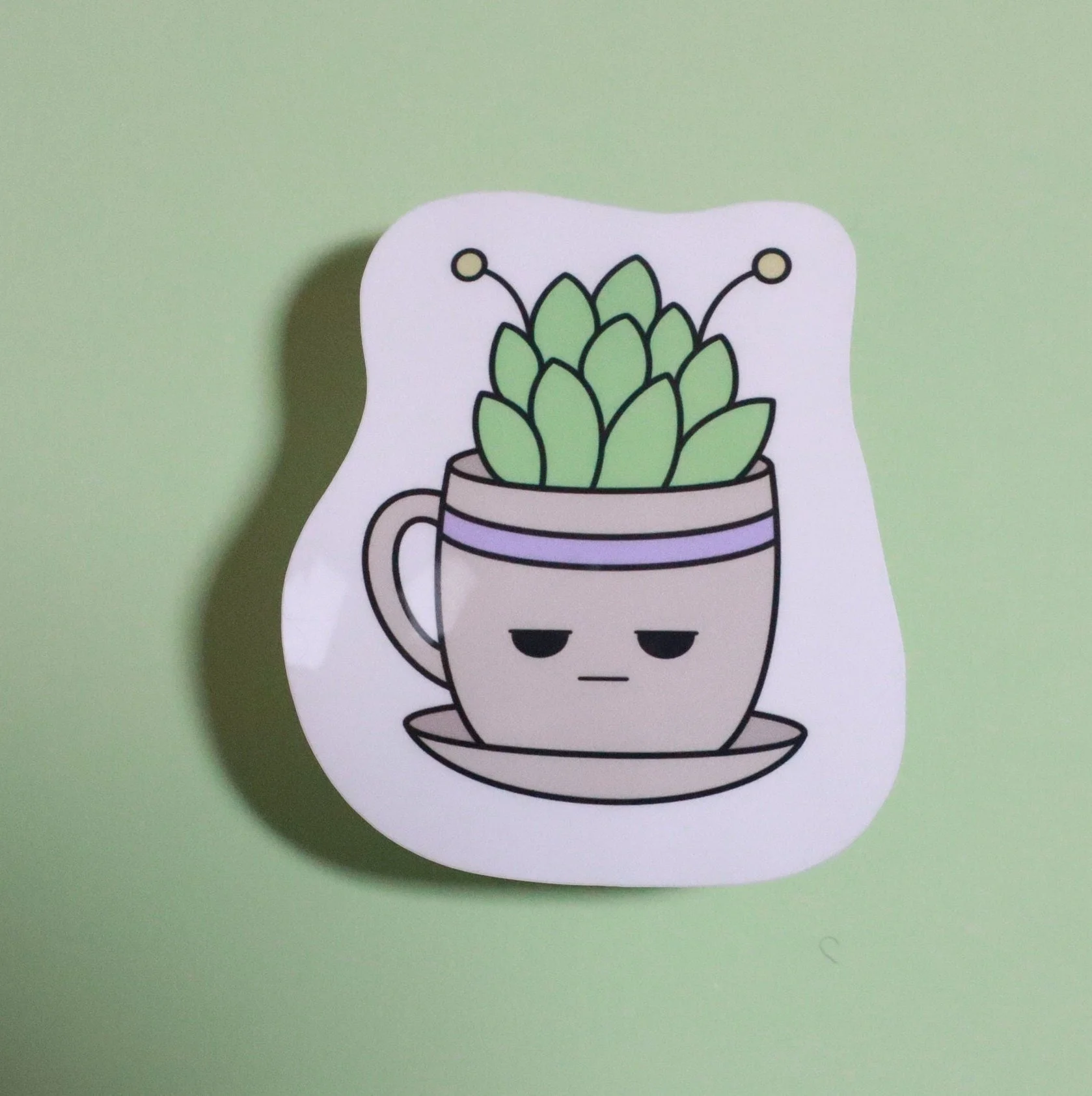 Kawaii Blue Potted Plant, Metal Backed Pin