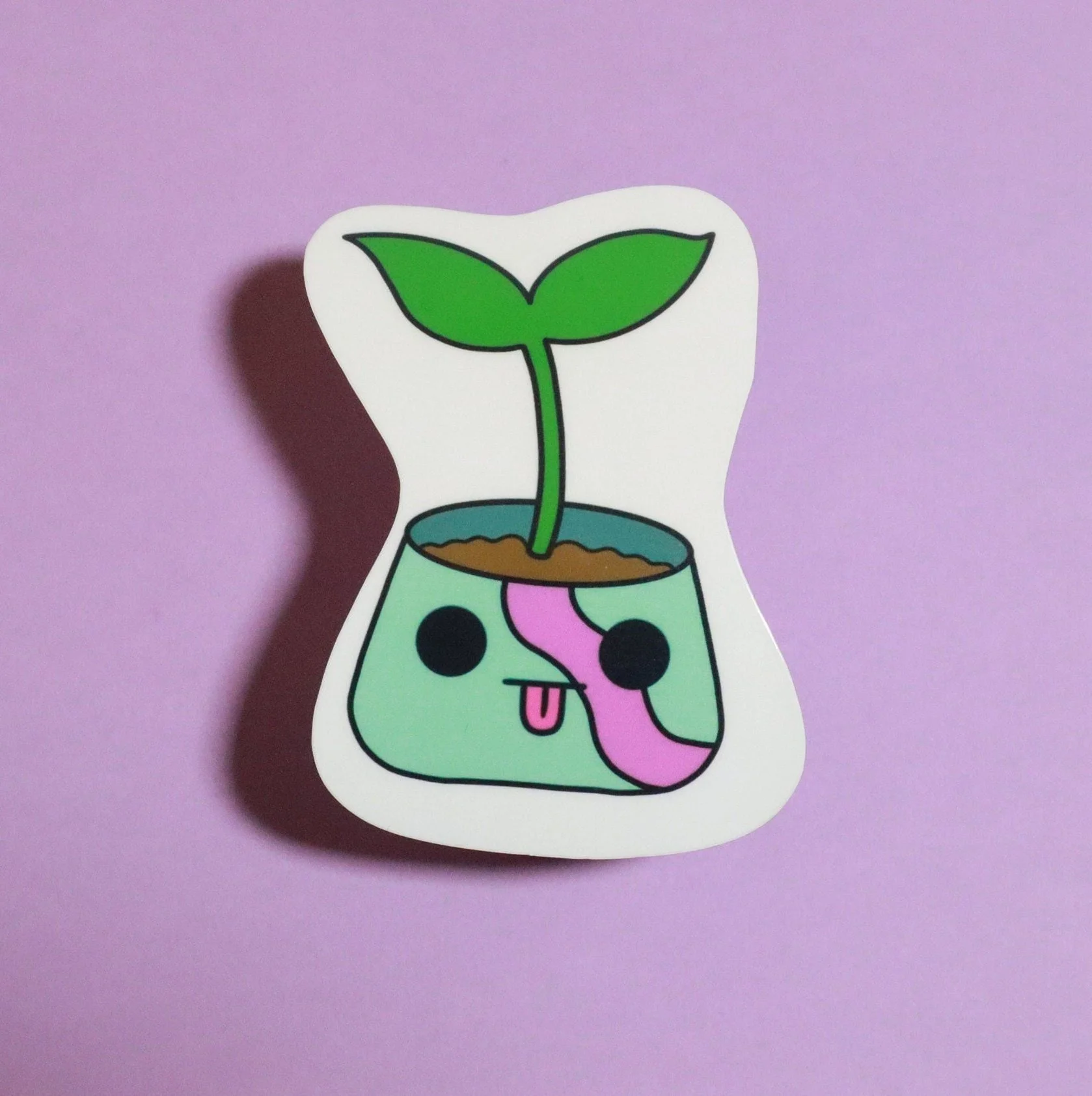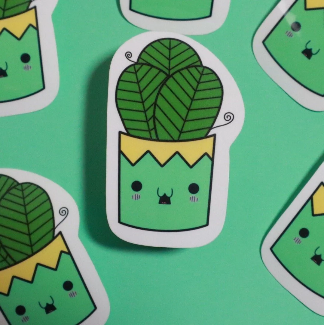 Kawaii Green Potted Plant with Big Leafs, Metal Backed Pin